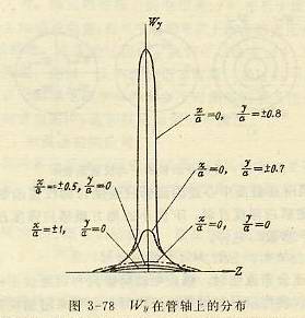 圖3-78是管軸方向上Wy的分布情況。從圖中可知,Wy值隨著離開電極所在截面距離(z)的增大而迅速衰減,當距離z>0.25D時實際上達到零。這說明在離電極平面較遠處的管內空間,流體產生的感應電勢對電極上的輸出信號基本上沒有什么貢獻,因此可以把變送器的磁場縮短,從而使整個變送器的長度和體積大大縮小,重量減輕。例如,φ100mm的變送器,原來根據均勻磁場原理設計,要求磁場均勻,線圈軸向長度為2.5~3D,整個變送器的長度為610mm,現根據W函數分布制成的非均勻型變送器,長度僅為300mm。